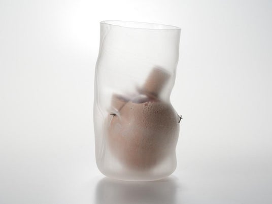 安藤項司《つくもがみ》2025 ガラス、陶土、金属線 H220×W120×D120mm
