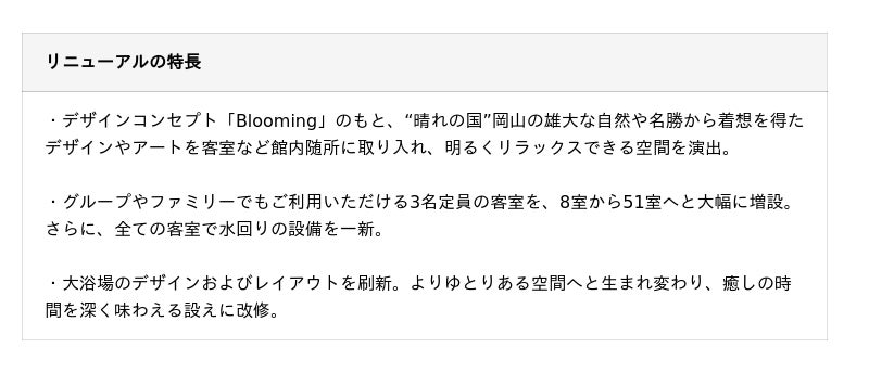 ■「三井ガーデンホテル岡山」リニューアルの特長