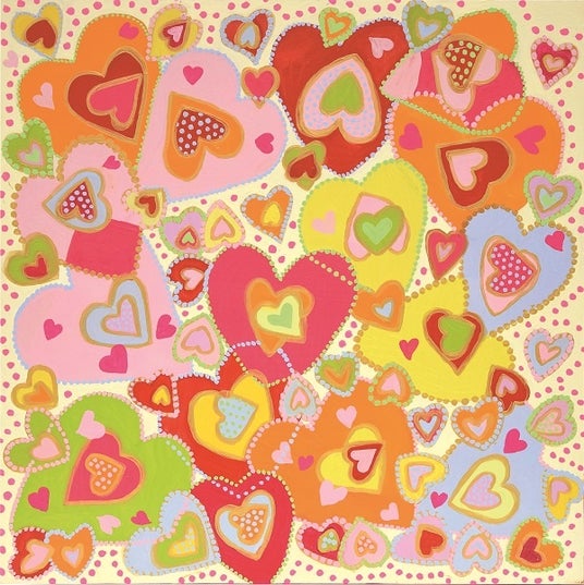 ▲醍醐 恵子「色んな大きさのハート」61X61cm