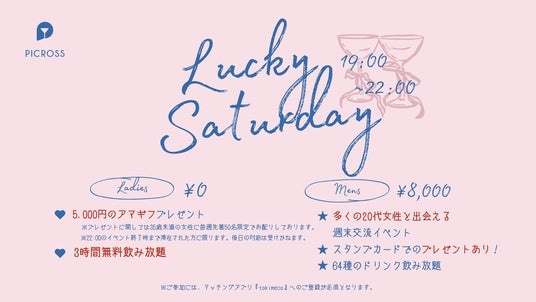 スタンディングバー PICROSS(東京都豊島区大塚)は、2026年2月21日(土)より、毎週土曜日に男女の交流を楽しめる新イベント『Lucky Saturday』を開催いたします。