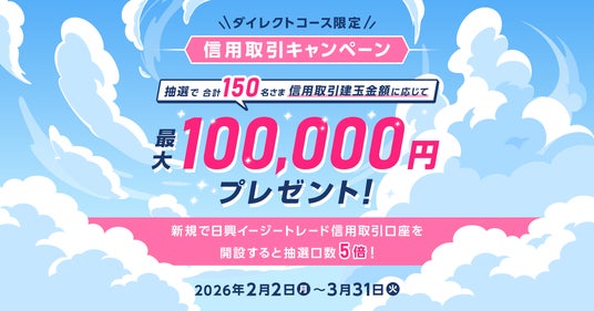 2026年2月2日(月)~3月31日(火)に日興イージートレード信用取引口座を新規に口座開設されたお客さまは抽選口数が5倍になります。