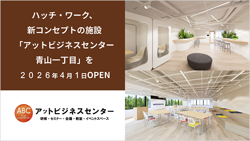 株式会社ハッチ・ワーク(本社:東京都港区、代表取締役社長:増田知平、以下「ハッチ・ワーク」)は、2026年4月1日に、従来の貸会議室の概念を拡張した新コンセプト施設「アットビジネスセンター青山一丁目」をオープンいたします。