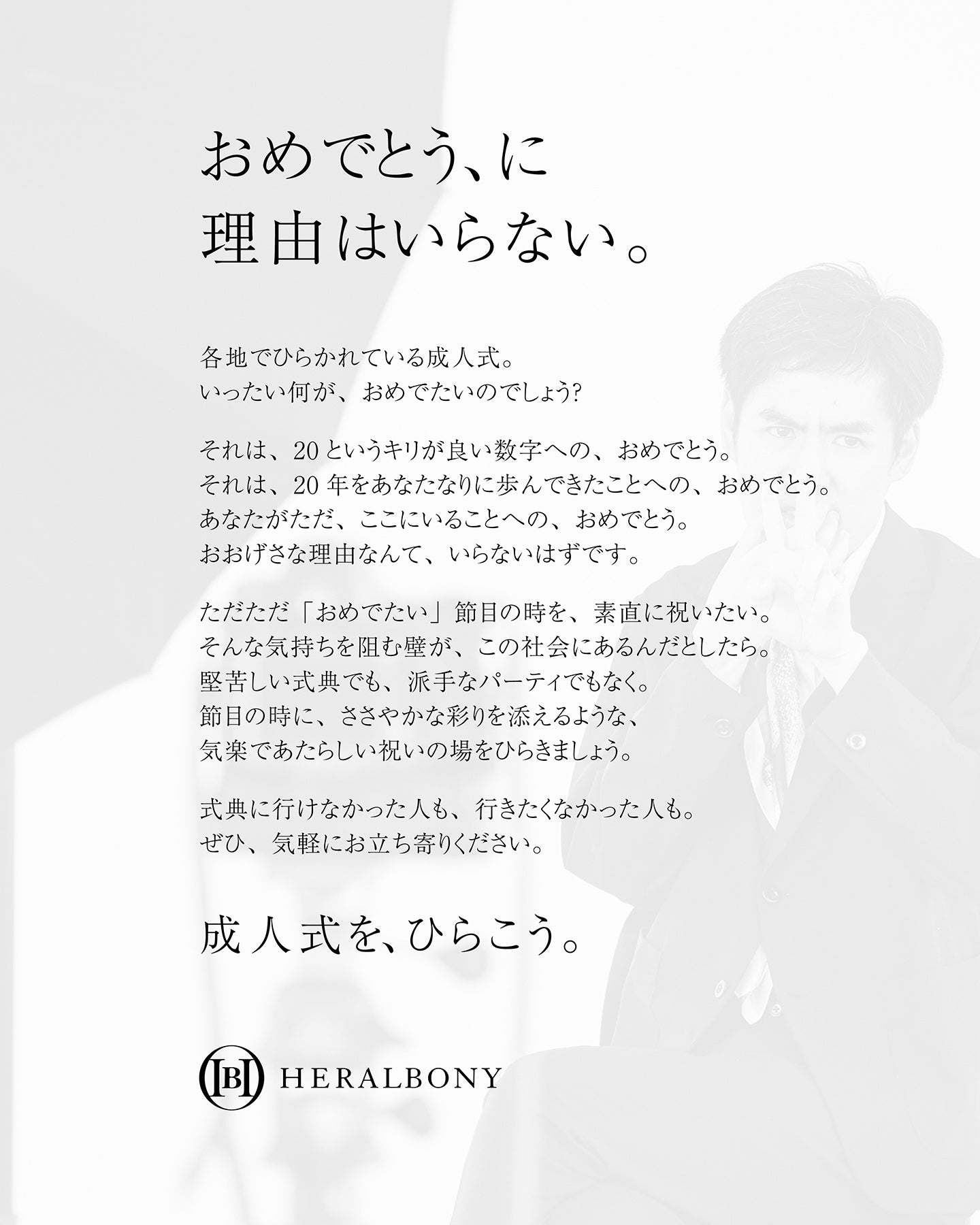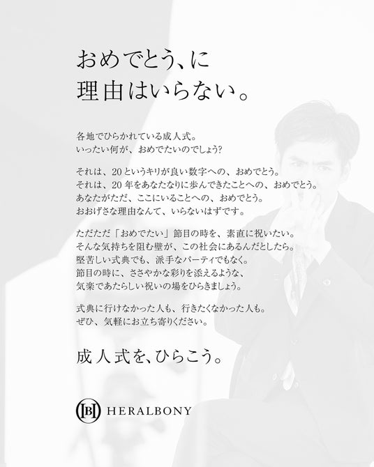株式会社ヘラルボニー(本社:岩手県盛岡市、代表取締役:松田 崇弥・松田 文登 以下、へラルボニー)は、2月21日(土)へラルボニー銀座店にて、今年度成人を迎えた方を対象とした成人記念撮影イベントを開催いたします。