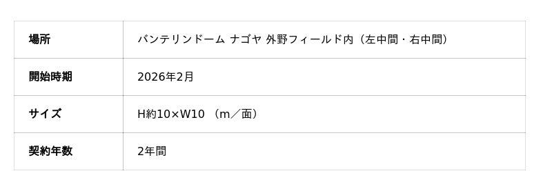 日本ガイシ(本社:名古屋市)は、「バンテリンドーム ナゴヤ」の外野フィールド内(左中間・右中間)に、企業ロゴを芝生で表現した広告を新たに掲出します。