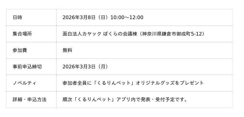 実証実験期間中の2026年3月8日(日)には、ゴミ拾いをスポーツとして楽しむ「スポGOMI」(https://www.spogomi.or.jp/)と「くるりんペット」のコラボレーションイベントを鎌倉市内で開催します。
