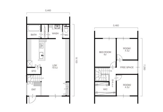 1F床面積 / 49.68平方メートル (15.03坪)2F床面積 / 39.74平方メートル (12.02坪)