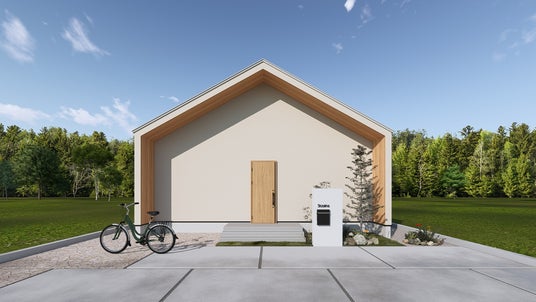 天然木とアイボリーのナチュラルカラーでまとめた外観は、温かみがあり、シンプルながらも細部にこだわりが光る仕上がりになっています。