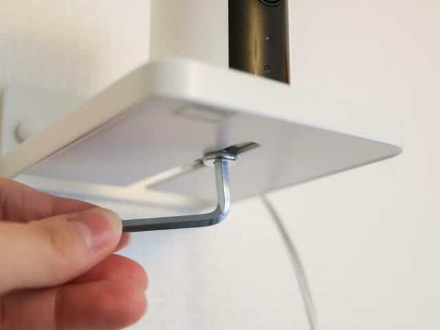 わが家の「Ring Indoor Cam」は底面にネジがあるので、これを外して土台をかませてから固定しました。
