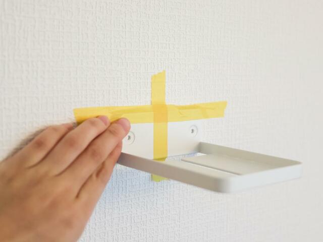 設置する時は、まずマスキングテープで本体を仮どめして…