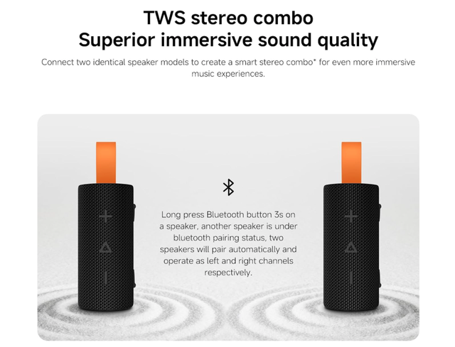 TWS(True Wireless Stereo)にも対応しており、同モデルをペアリングして左右チャンネルでのステレオ再生も可能です。
