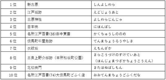 ほかにも吉原神社、衣紋坂、名所江戸百景(38)廓中東雲など、吉原関連のスポットの検索が急浮上。さらに日本橋や名所江戸百景(74)大伝馬町ごふく店など、歴史的事件の舞台などより、「江戸の暮らしや風俗」に関わるスポットが検索数を伸ばしたのが2025年の特徴です。