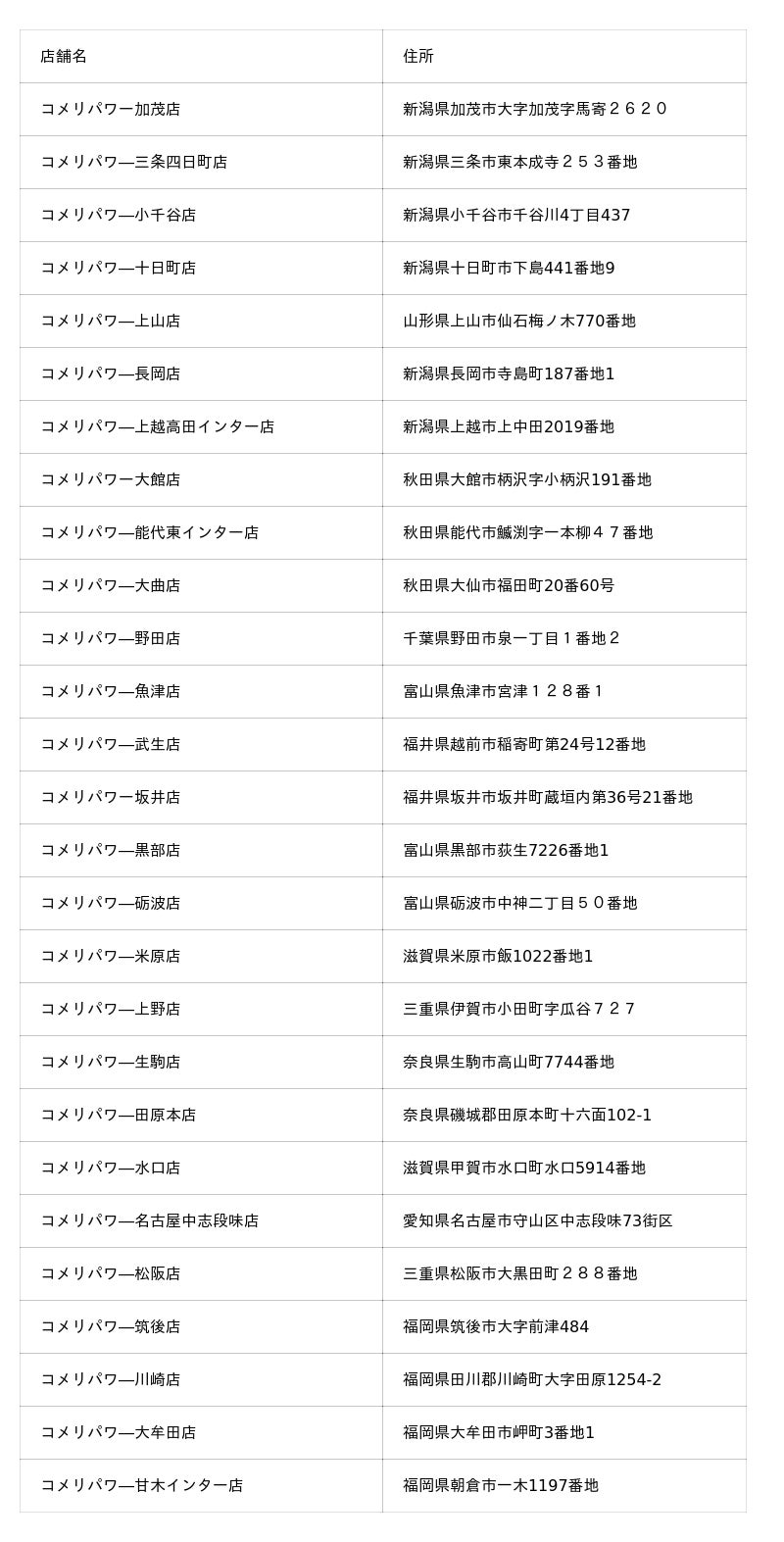 設置場所:コメリパワー 27店舗