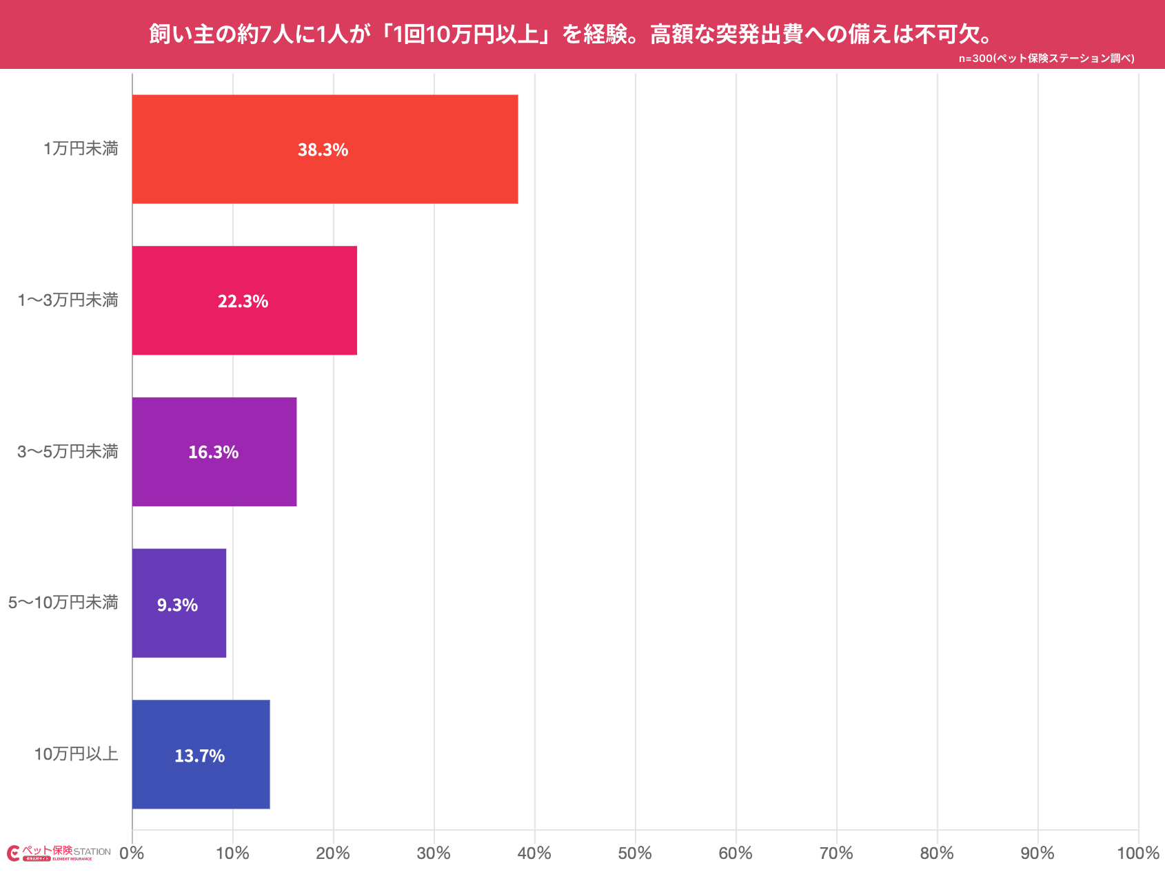 また、1回で3万円以上の費用を経験した飼い主は、全体の約4割(39.3%)を占める結果です。