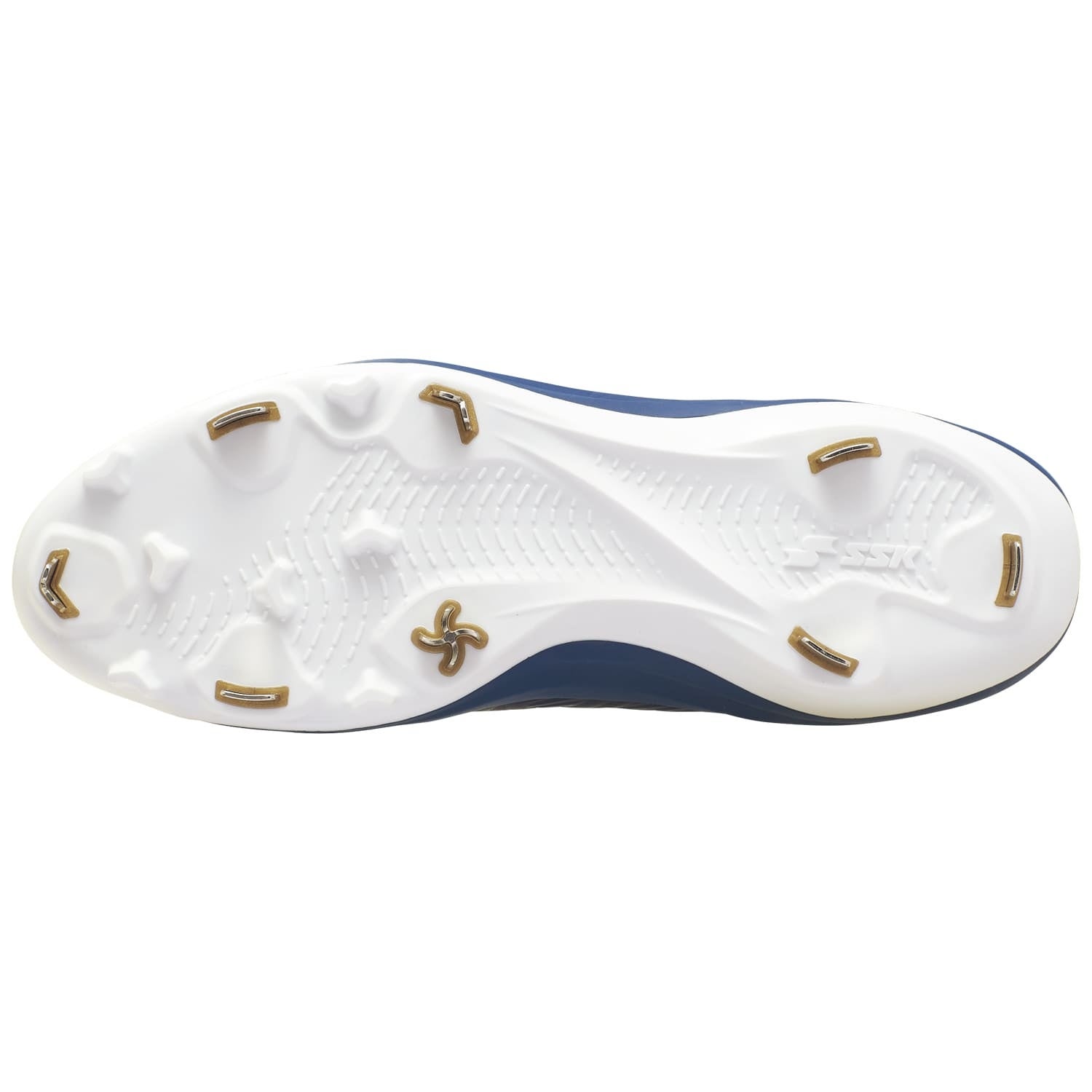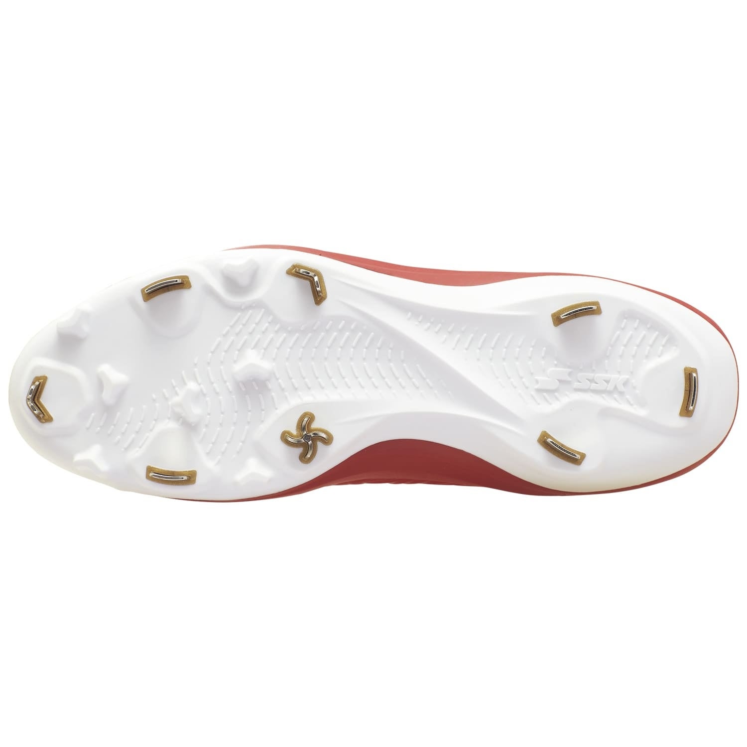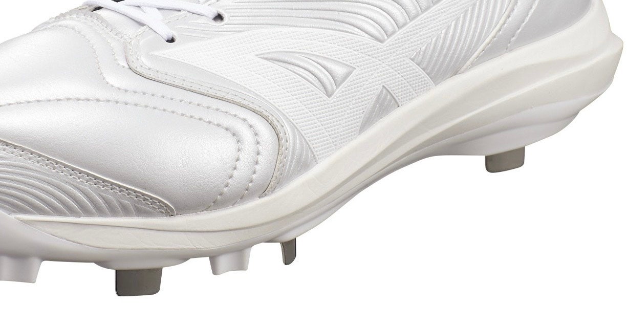 SSKの特許技術であるMIM製法(特開2014-050658)を採用し、従来のY字型による三方向グリップの金具形状を、四方向に対応するスクリュー形状へアップデート。踏み込み時に最も力がかかる母指球部分にスクリュー金具を配置することで、走・攻・守のあらゆるシーンにおいて、多方向への優れたグリップ力を発揮します。