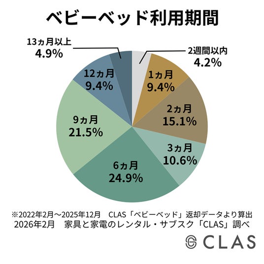 (※自社調べ、2022年2月~2025年12月 CLAS「ベビーベッド」返却データより算出)