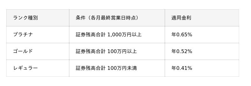 また、一定の条件を満たした場合、証券残高にかかわらずランクアップ特典により優遇金利を適用します。