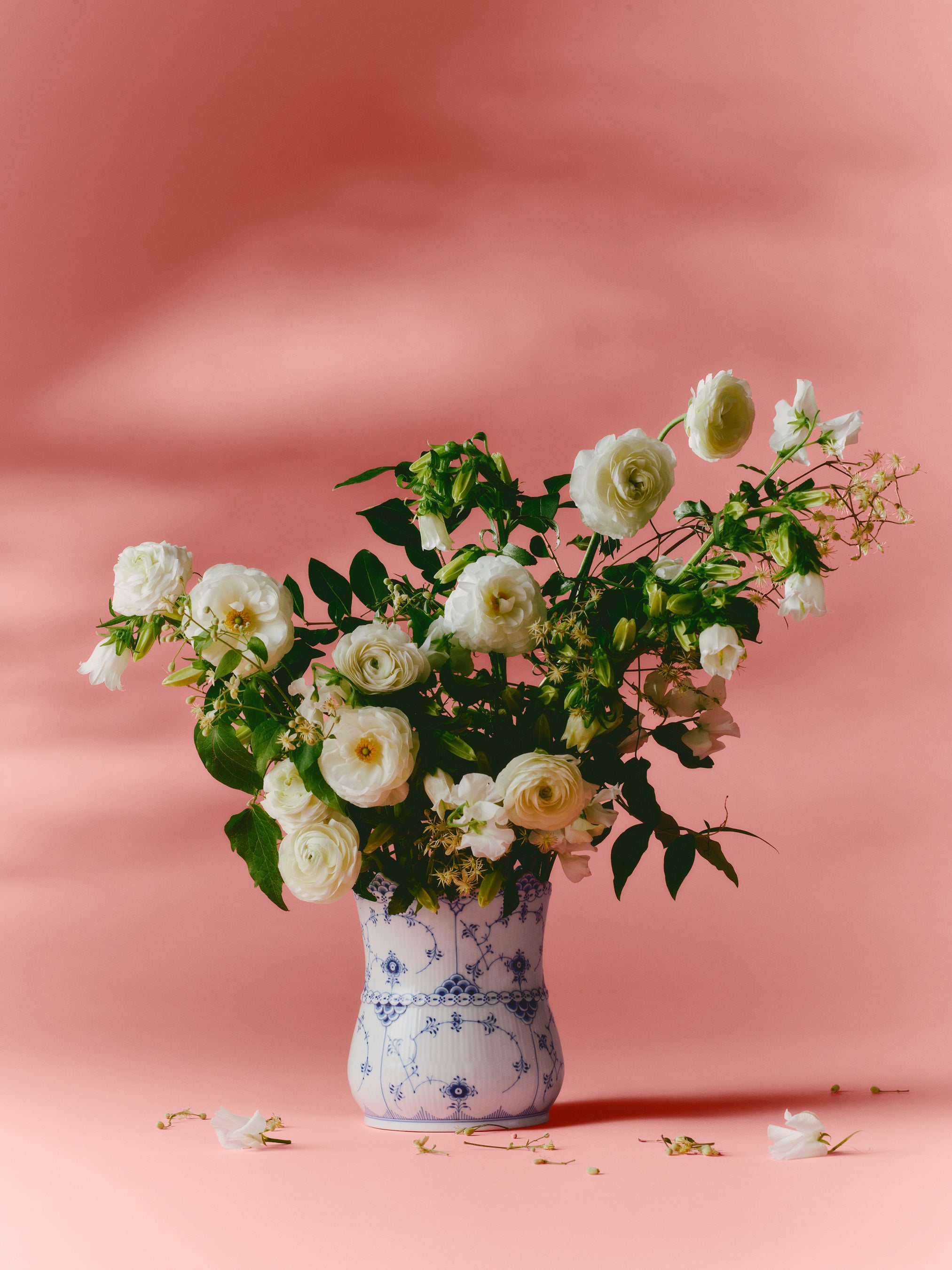 繊細な一輪から 伸びやかに咲き誇る大ぶりな花束まで、あらゆるフラワーアレンジメントが、ロイヤル コペンハーゲンのクラフツマンシップが息づくハンドペイントのベースとともに、美しい物語として紡がれます。