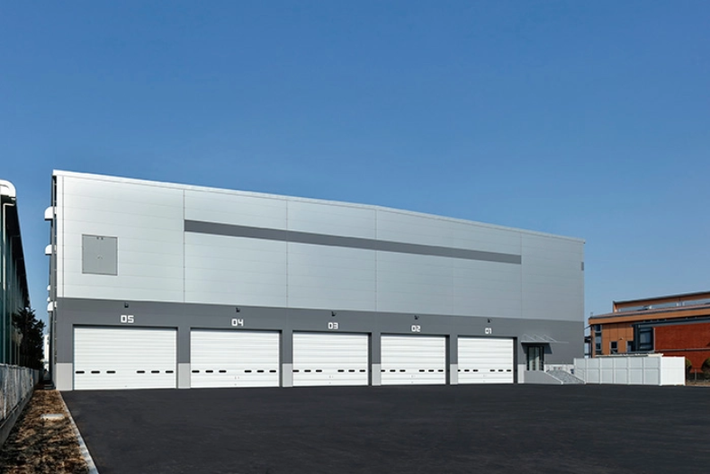 倉庫部分の基本スペックは、床荷重は1.5t/平方メートル 、有効高さは1階・2階共に6.0m以上、照度は300ルクスを確保し、外壁には断熱性の高い金属サンドイッチパネルを用いています。