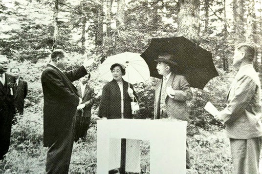天皇皇后両陛下 富士山五合目行幸啓の折の一幕(1957年7月8日)※当時の山梨県知事・天野久が随行