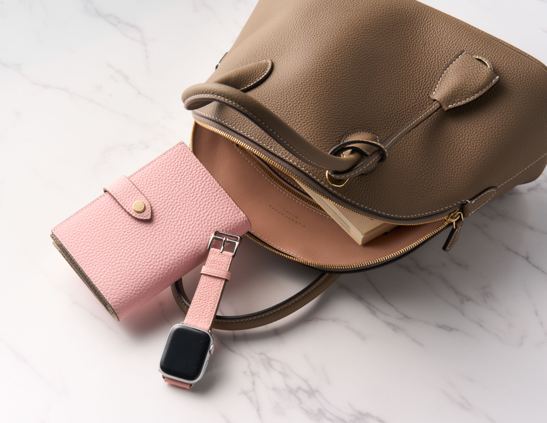イタリアの熟練した職人たちの手仕事によって丁寧に仕立てられたバッグをはじめ、iPhoneケースやウォレット、スモールレザーグッズなど、日常に寄り添いながらも大人の装いに静かな華やぎを添えるアイテムをラインアップ。