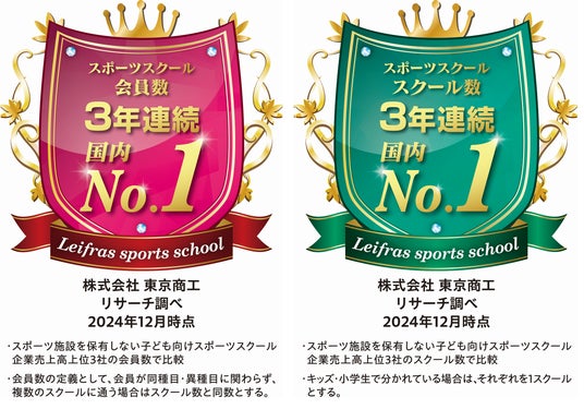スポーツスクール会員数・スクール数3年連続国内No.1