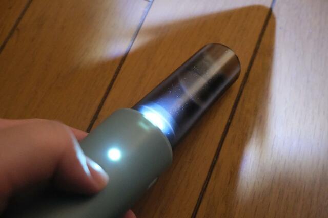 動作時にはLEDライトが点灯するので、冷蔵庫の奥や棚の下など、暗くて見えにくい場所のホコリも確認しながら掃除できました。