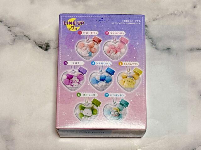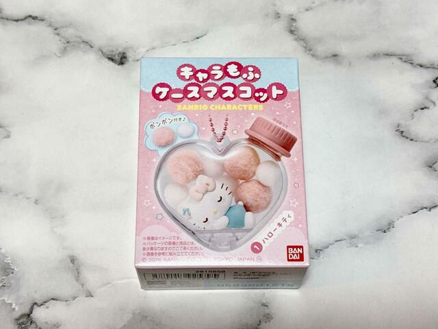 「キャラもふケースマスコット サンリオキャラクターズ」は、バンダイが展開する食玩シリーズ。クリアなハート型の瓶ケースの中に、かわいいマスコットとふわふわのポンポンがセットになったアイテムです。