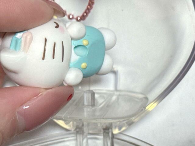 付属のマスコットは、ナイトキャップやヘアバンドをつけた“お眠りポーズ”。すやすや眠る姿がとにかくキュートで、見ているだけで癒されます。