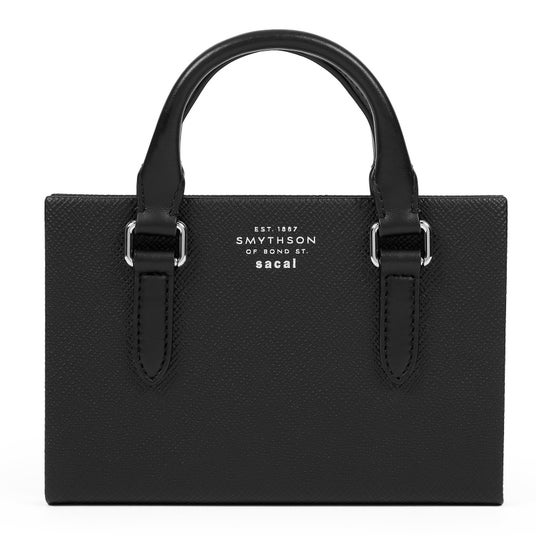 コラボレーションでは、sacai がクリエイティブプロセスの中核を担い、Smythson を象徴する3つのアイテム : パスポートカバー、ポーチ、チェルシーノートブックを展開。すべて Smythson のシグネチャーであるブラックのクロスグレイン加工を施したパナマレザーを使用しています。各アイテムには、Smythson の歴史あるブリーフケースやラゲージから着想を得た、ミニマルで構築的なハンドルをあしらい、クラシックなデザインに意外性のある再解釈を加えることで、sacai ならではのアイデンティティを表現しています。