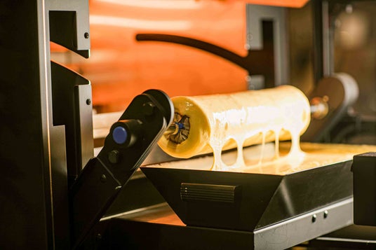 【焼き立てバウムクーヘン】AI搭載の特別なマシンで、目の前で焼き上げるライブ感は、まるでスイーツショー。