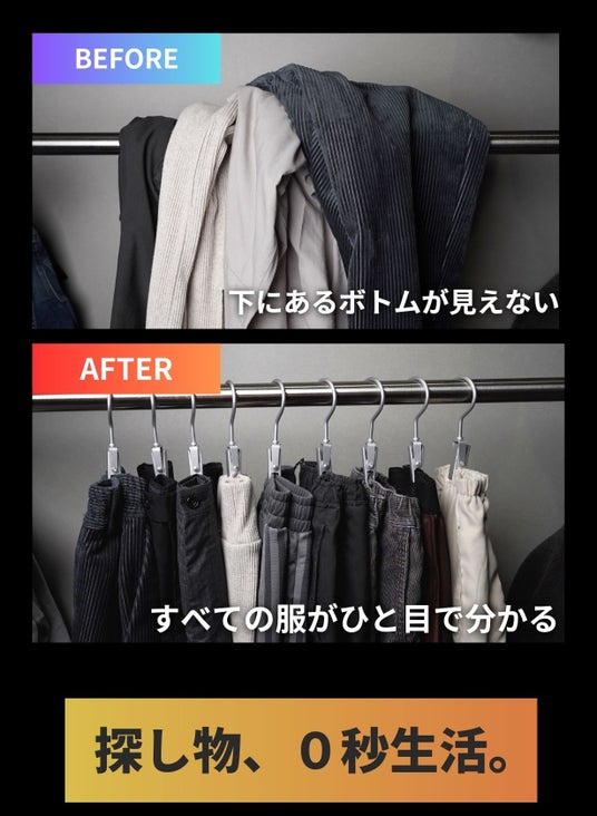 【プロジェクト名】:【迷う収納、卒業】面倒なズボン収納を1秒にするハンガー。その差が毎日を快適に。