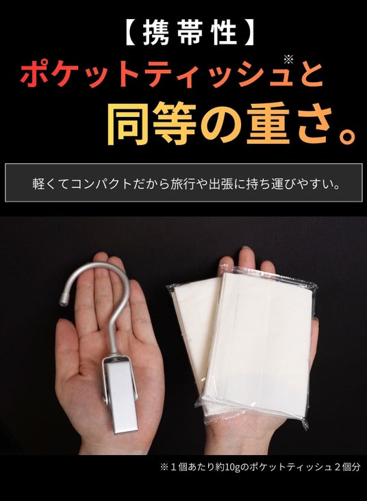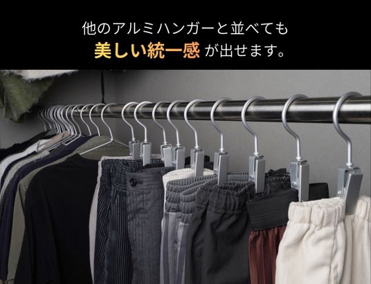 高耐久・超軽量のアルミ素材を採用し、1本わずか約20g。つや消しのシルバーデザインで、クローゼットに揃えた時の“統一感”にもこだわりました。出張・旅行など持ち運び用途にもフィットします。