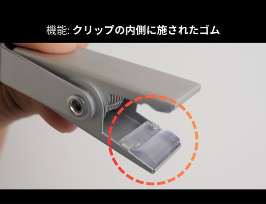 Point3:クリップ内側のゴムで衣類を守る。強力保持なのに跡がつきにくい