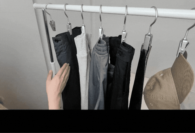 フックが自在に360度回転することで、クローゼット内でも向きをサッと変えられます。左右どちらからでもアクセスしやすく、衣類確認もスムーズに。