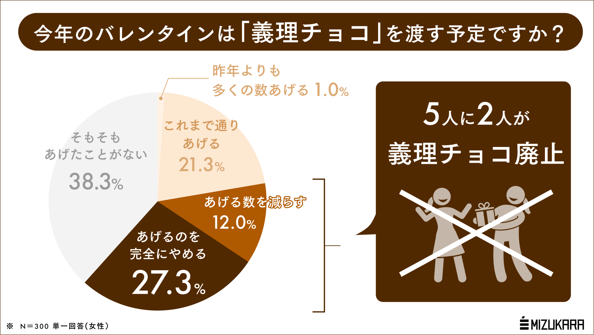 認知科学に基づくコーチングを法人・個人に提供する株式会社ミズカラ(本社:東京都千代田区、代表取締役 山宮健太朗)は、2026年1月16日(金)に20歳~59歳の有職女性300名を対象とした「インフレ後のバレンタイン動向」調査を行いました。