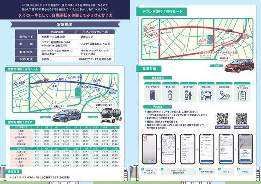 デマンド運行路線は、事前予約制でご利用いただけます。予約方法:専用のオンラインページ(https://www.monet-technologies.com/toyota-city)から予約