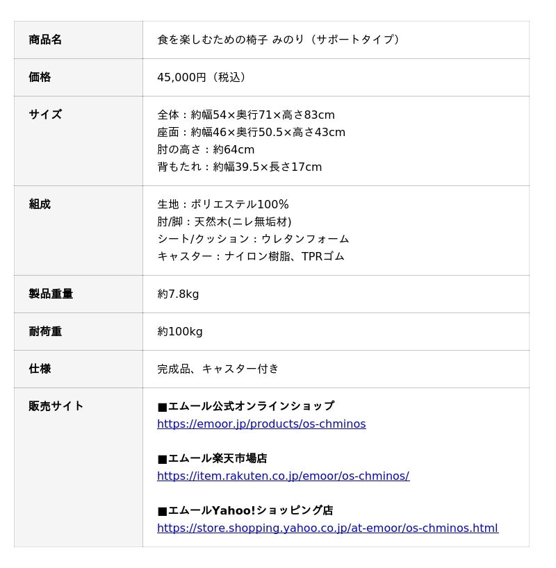 「寝る、座る、たたむ」に専門性を持った健康家具ブランドEMOORを展開する株式会社エムール(東京都立川市:代表取締役 高橋 幸司)は、2026年2月9日より「食を楽しむための椅子~みのり~サポートタイプ(以下、みのりサポートタイプ)」の先行予約販売(2026年2月中旬入荷予定分)を開始しました。