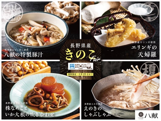 モダンな落ち着いた雰囲気で和惣菜や『にぎり寿司』・『天ぷら』などの和のごちそうが楽しめる『ブッフェレストラン 八献 イオンモール幕張新都心店』。この度、2026年2月12日(木)~ 2026年2月25日(水)の期間限定にて、JA全農長野協賛『長野県』のきのこが食べ放題で堪能できる『きのこフェア』を開催いたします!