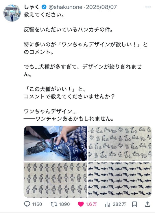 創業57年の歴史を持つ株式会社笏本縫製(本社:岡山県津山市、代表取締役社長:笏本 達宏)は、前回販売時にわずか3日間で15,000点以上を受注した「ダブルガーゼハンカチ&手ぬぐい」について、2月20日(金)12:00から、22日(日)23:59までの3日間限定で、再受注を実施いたします。国賓への贈呈するネクタイを手がけた実績もある職人が一枚ずつ縫製を行う本製品は、前回のご注文ではSNSを中心に皆様からの応援をいただき、1分間に3.5枚売れ続ける記録を樹立 。国内生産1.4%という衰退の危機にある地場産業の現場から、再び日本製の誇りを全国へ届けます。