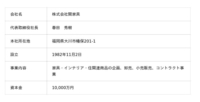 株式会社関家具 会社概要