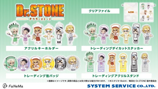 システムサービス株式会社(本社:東京都豊島区、代表取締役社長:田村宗弘)は、アニメ・マンガ・ゲーム作品等のキャラクター商品の企画・製作・販売をする自社ECサイト「FaNeMa」(URL:https://fanema.jp/)にて、TVアニメ『Dr.STONE』より「トレーディングアクリルスタンド」「缶バッジ」「ダイカットステッカー」他 全5種類の新商品を発売いたします。