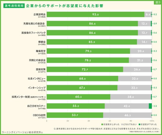 - 選考過程で「企業説明会」を受けた内定者、9割以上が「志望度が上がった」と回答(図3)
