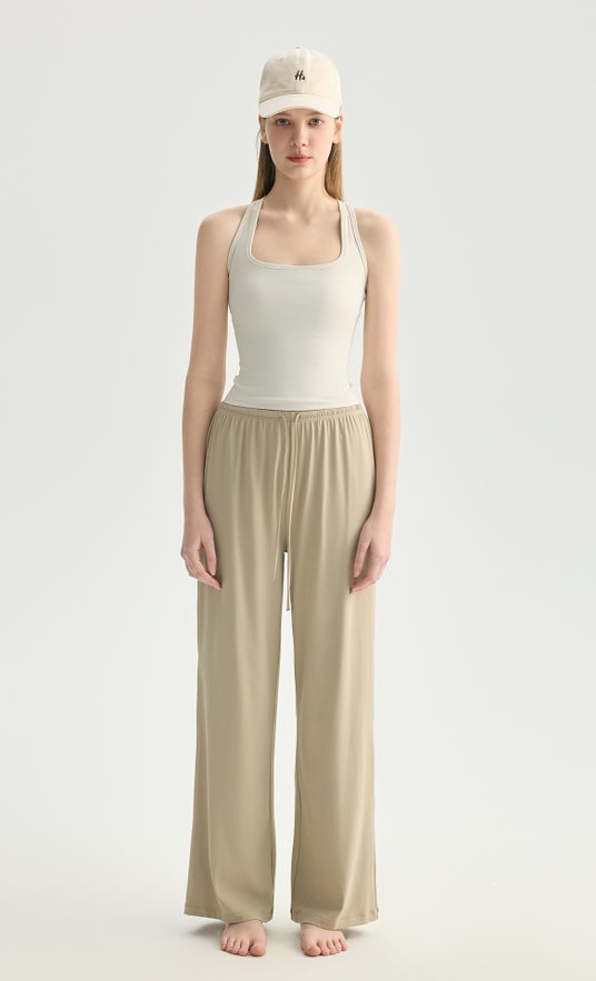 伸縮性のあるブラとキャミソールを一体型にするので、心地よく動きやすい着心地に
