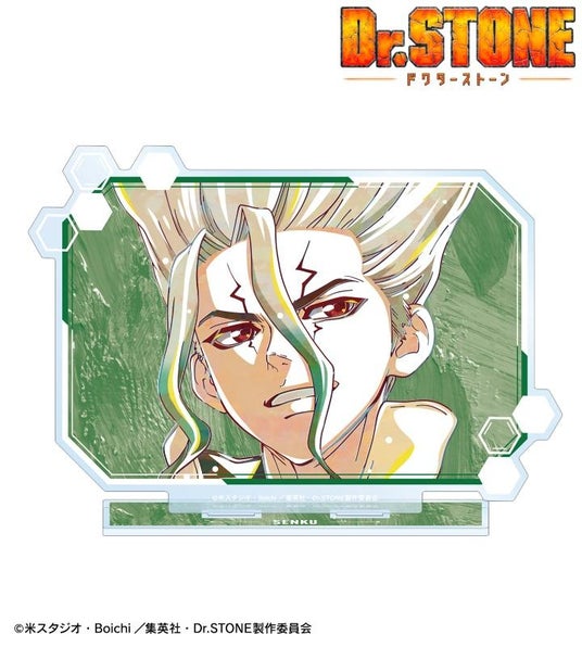 石神千空、あさぎりゲン、七海龍水、西園寺羽京、獅子王司、Dr.ゼノ、スタンリー・スナイダーのイラストを新たなタッチで魅力的に表現し、BIGなアクリルスタンドに仕上げました。