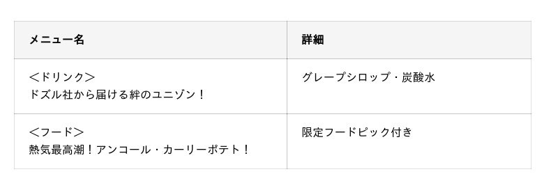 また、グループの絆やライブの熱気を表現したスペシャルメニューも販売します。