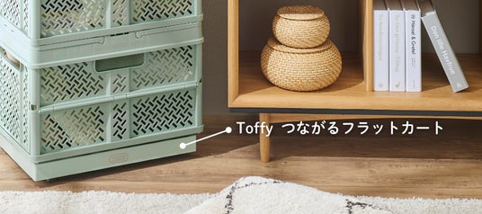 同シリーズの「Toffy つながるフラットカート」に載せて使用すれば、荷物の出し入れや移動もラクラク。収納から持ち運びまでを効率よくサポートします。