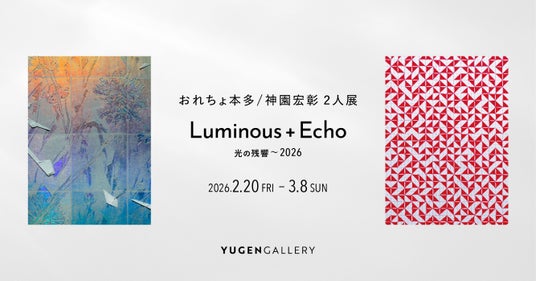 YUGEN Gallery FUKUOKA(福岡県福岡市中央区大名2-1-4 ステージ1西通り4F)では、2026年2月20日(金)より、おれちょ本多と神園宏彰による二人展「Luminous + Echo(光の残響)~2026」を開催いたします。