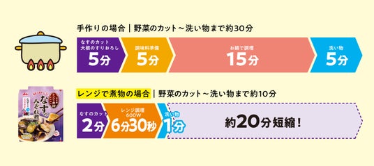 通常の調理工程を大きくカットすることで高い時短効果を発揮 (なすのみぞれ煮)