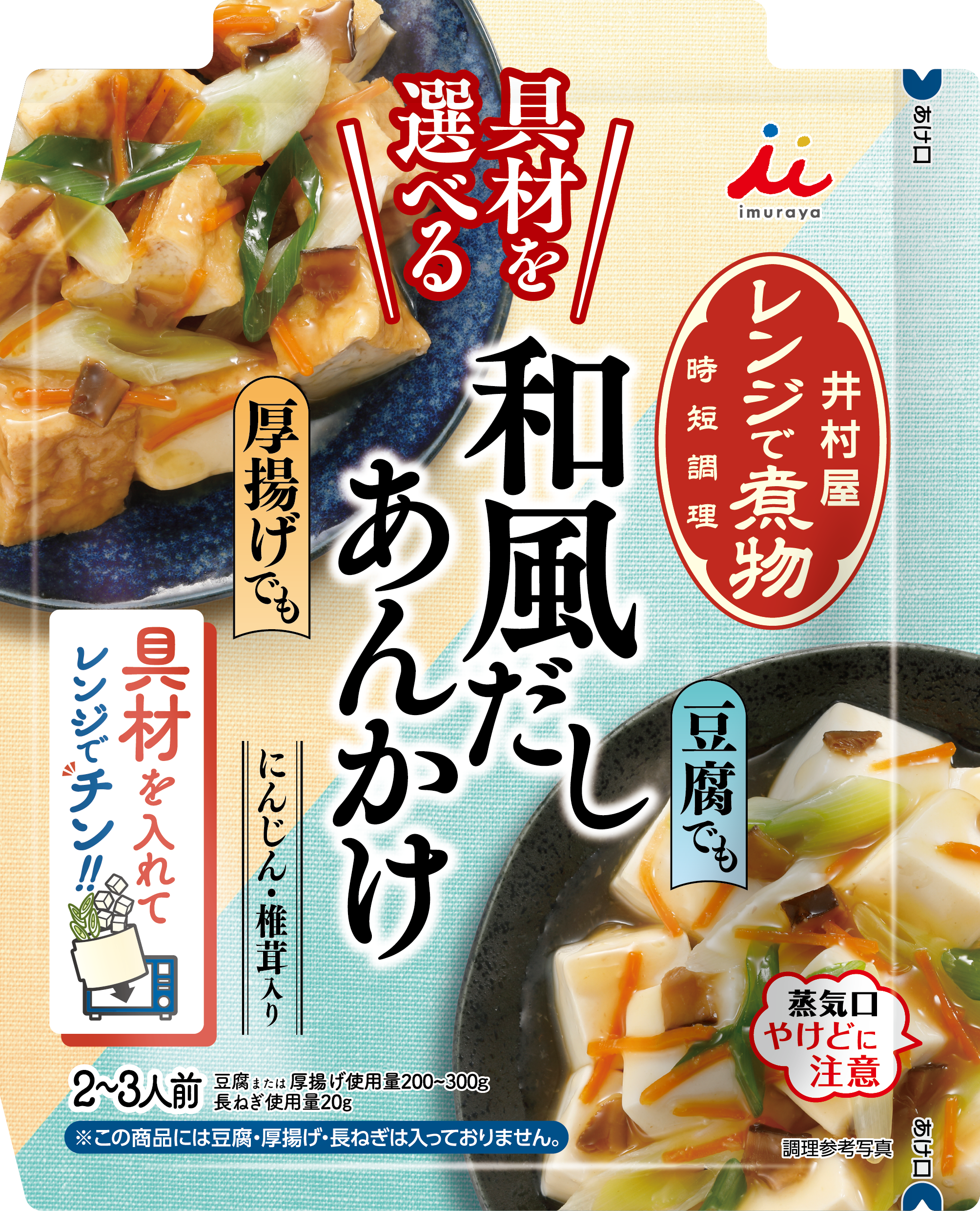 具材を選べる レンジで煮物 和風だしあんかけ1商品で2つのレシピ提案!豆腐または厚揚げを好みに合わせて選べます。