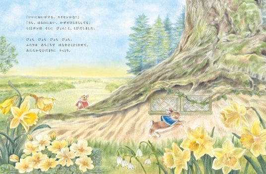 さむいふゆが おわりをつげて、うさぎのもりに はるがやってきました。